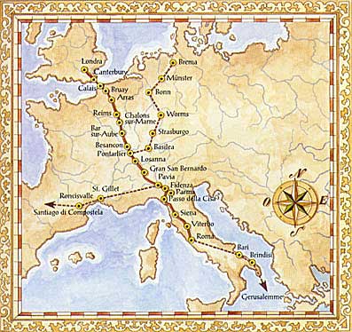 Segno noto della presenza gerosolimitana nella zona era certamente l’Alter Spittel, l’ospizio vecchio, a poca distanza dal Passo del Sempione, voluto dal vescovo di Sion e già esistente nel 1235 sotto la direzione di un frate e “magister”, tale Bernardo, appartenente all’ordine dei Cavalieri Ospitalieri di San Giovanni di Gerusalemme, gli stessi che, persa la Città Santa (1291) avrebbero spostato la loro sede principale prima a Cipro, facendosi chiamare semplicemente “Cavalieri di San Giovanni”; poi a Rodi dal 1330, mutando di nome in “Cavalieri di Rodi”; infine a Malta, facendosi riconoscere con il nome di “Cavalieri di Malta”, dopo la sconfitta subita da Solimano il Magnifico nel 1522. Un altro ospizio dei Cavalieri di San Giovanni, “San Giovanni dei Pellegrini”, si trovava a Novara, fuori dalla Porta di Milano, sulla strata mediolanensis, lungo la riva del Ticino.