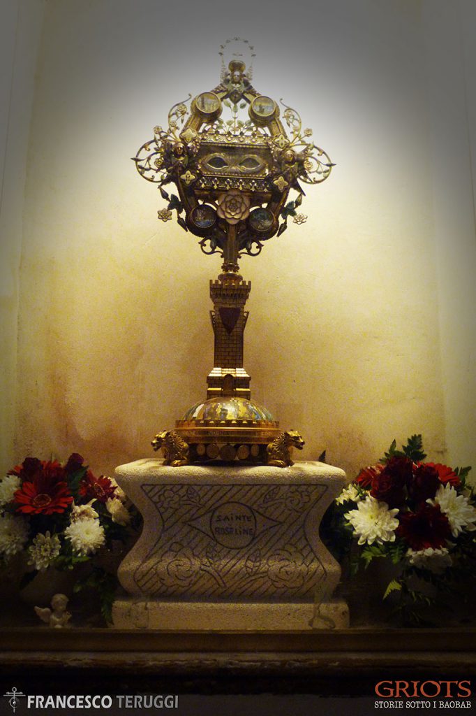 L’antico maniero provenzale oggi è una rinomata cantina vinicola che produce vini sopraffini, ma proprio accanto, sostenuta da poderosi contrafforti, ancora si erge una mite cappella. Qui riposano ancora, mirabilmente conservate, le spoglie di Sainte Roseline, sorella del Gran Maestro degli Ospitalieri Hélion de Villeneuve.