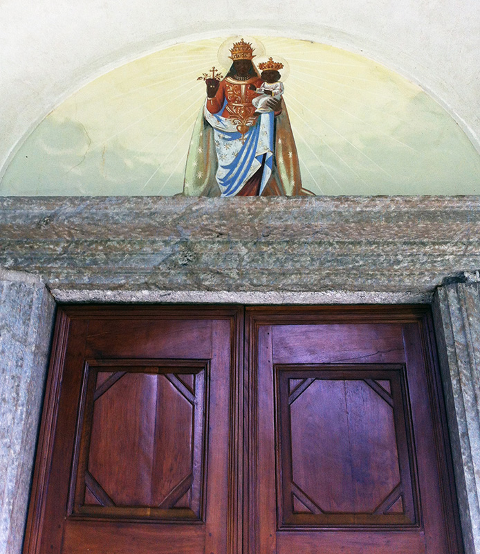Certamente chi individuò il luogo e progettò il complesso non si è lasciato sfuggire alcun dettaglio e ha fatto le cose per bene. La porzione di montagna alle spalle di Migiandone, nella parte bassa della valle e ricca di rame, (nell’Ottocento qui esisteva una miniera)1 è certamente in perfetta risonanza con la Vergine Nera portatrice di vita feconda e il pianoro è, in tutta quest’area risonante, il punto migliore.