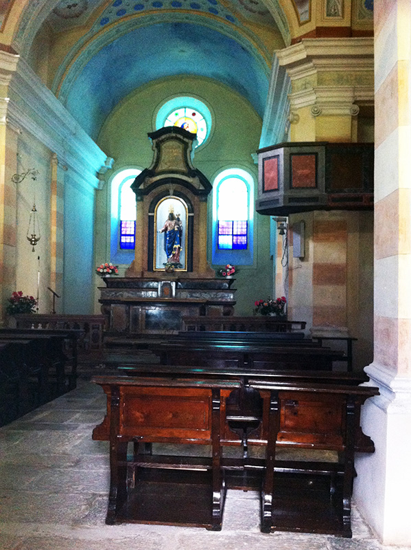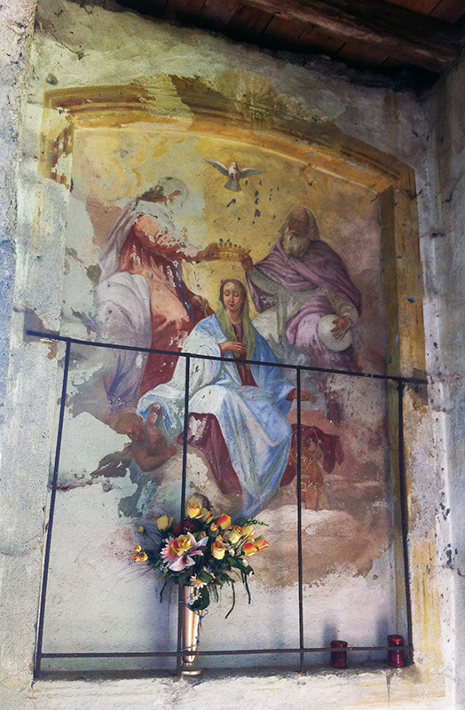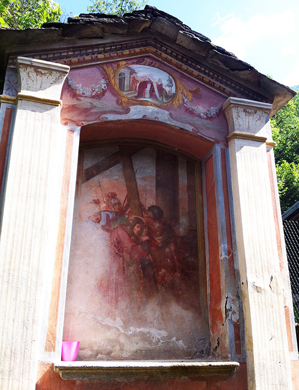 L’intero percorso non era strettamente necessario a chi giungeva invece agli alpeggi. O perché vi era già passato salendo oppure perché veniva da Ornavasso e dai Santuari del Boden e della Guardia. Entrando da Est, accedeva direttamente, dall’ultima tappa del corridoio coperto, alla chiesa.