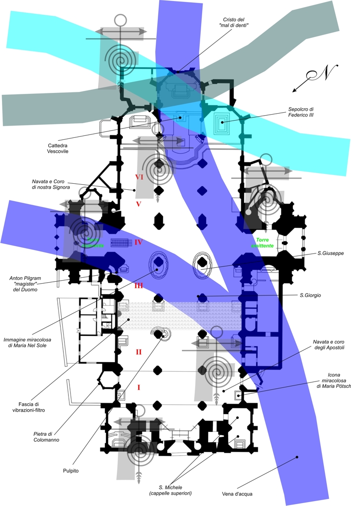 Come il Cielo, anche Madre Terra non fu per nulla trascurata nell’edificazione di Stephansdom. Il duomo sorge infatti su un appropriato intersecarsi di falde acquifere, che fu mantenuto e adeguato agli ampliamenti intrapresi nei secoli. Alla “madre”, quale generatrice terrena del Cristo e inizio di tutta la vicenda evangelica, fu dedicata un’intera navata e ad essa fu addossata la Torre Nord, più bassa ma con fondamenta possenti che scendono in profondità nella terra. Molteplici sono le immagini miracolose della Vergine che la cattedrale custodisce.
