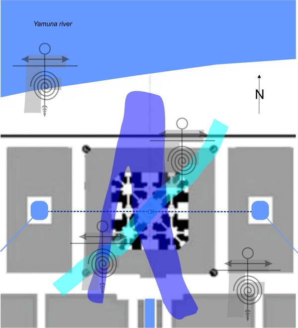La prima caratteristica interessante che balza all’occhio analizzando radioestesicamente il Taj รจ la sua perfetta coincidenza con un incrocio di vene d’acqua piuttosto ampie, scelta che sembrerebbe piรน adatta a un tempio piuttosto che a una tomba.